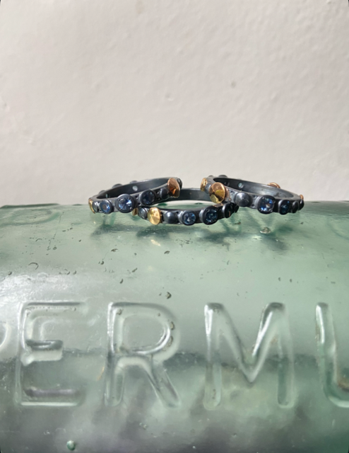 Sea Urchin Ring in Oxidised Sterling with 14K Yellow Gold & Montana Sapphires