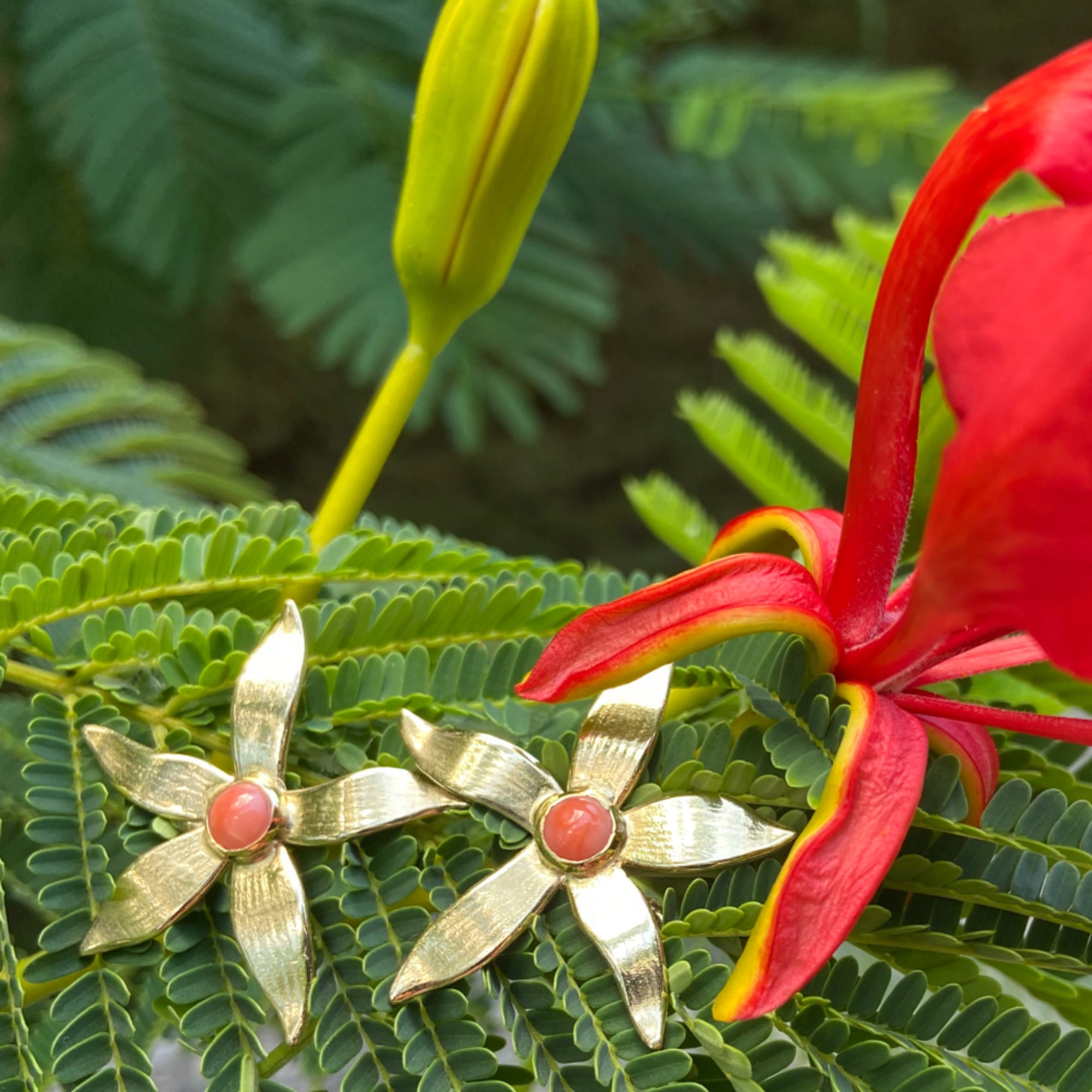 Oleander Leaf Pendant With 14K Gold Nodules & Bermuda Cedar Branch Ring